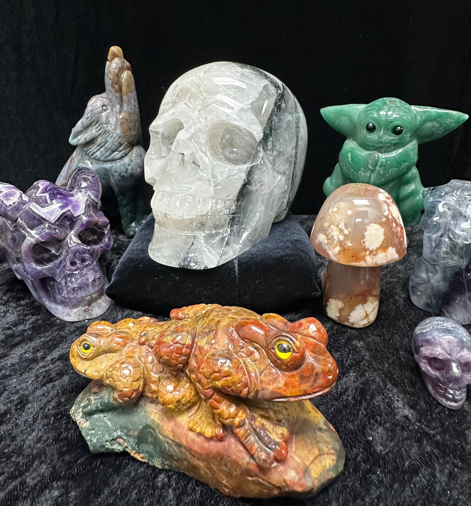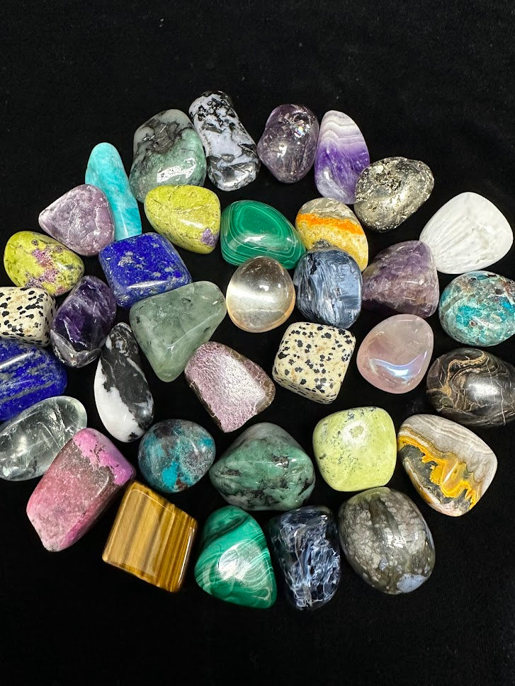 From all sizes and shapes of polished beauties. Points/Towers, Spheres, Palm stone...