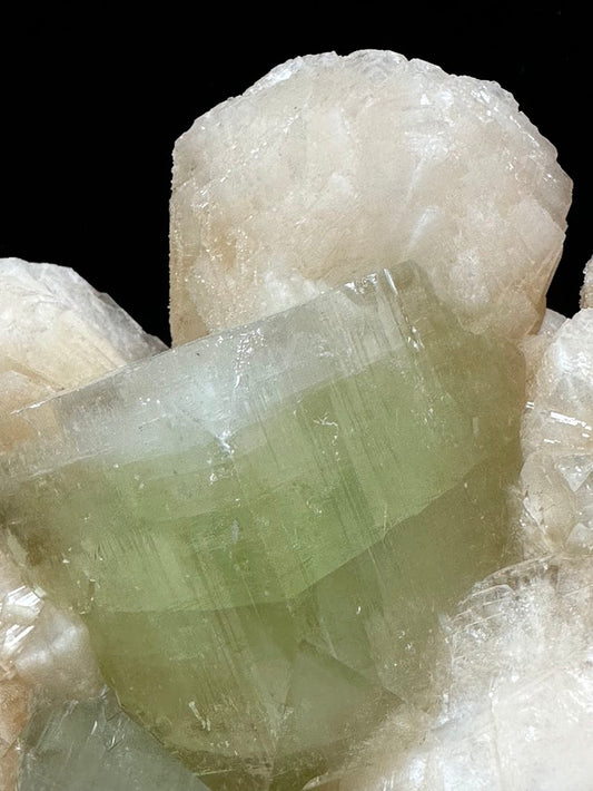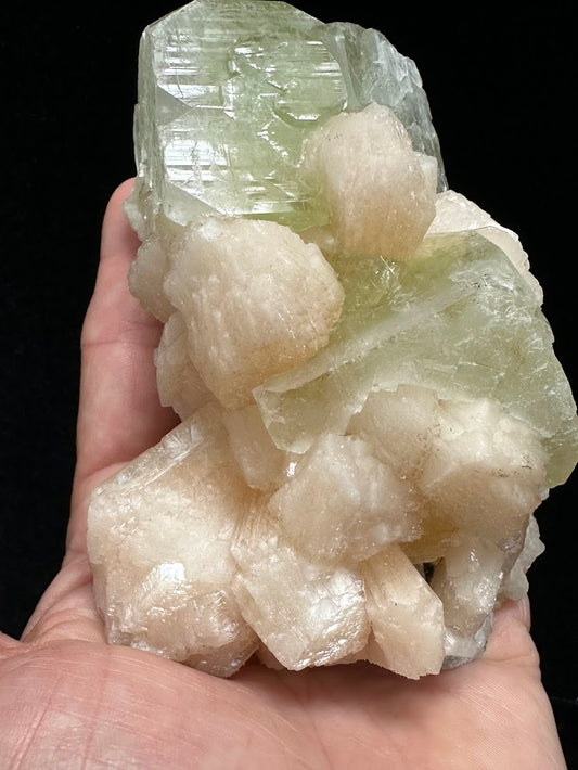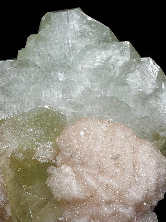 Drusy Peach Color Stilbite with Green Apophyllite Mineral Specimen