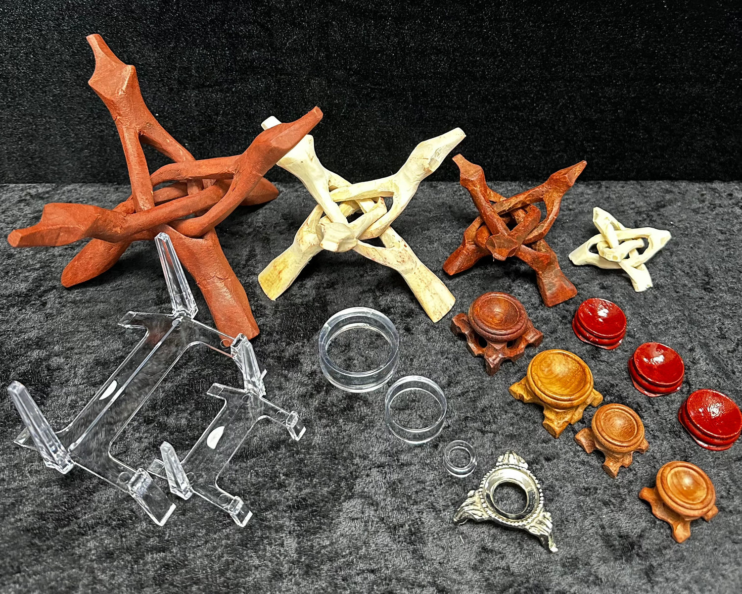 Snake head wood tripod mineral display stands. Hand carved out of one...