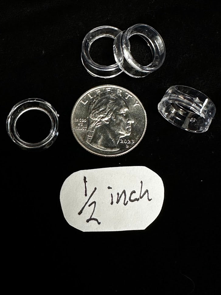 This is a 1/2 inch small sphere/egg stand. Perfect for small spheres like marbles and some small mineral specimens. This plastic circle will have a slight bevel to allow the sphere to seat better into itself to keep movement or slippage to a minimum.