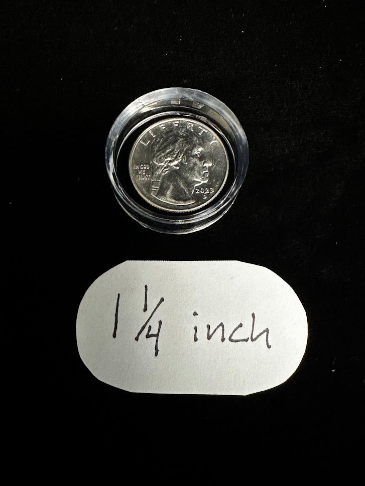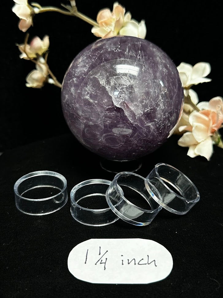 This is a 1.25 inch sphere/egg stand. Perfect for medium size spheres and egg shape stones. This plastic circle will have a slight bevel to allow the sphere to seat better into itself to keep movement or slippage to a minimum.