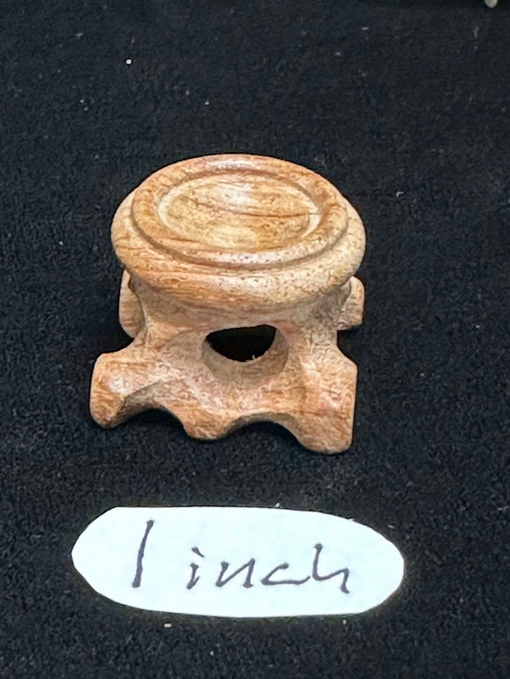 These are stained had carved stands witch offer elegance to enhance your display presentation. Because its natural wood the stain will take different to each piece, so the colors will vary a little pure each piece. These 1 inch stands are perfect for smaller spheres and egg shape stones.