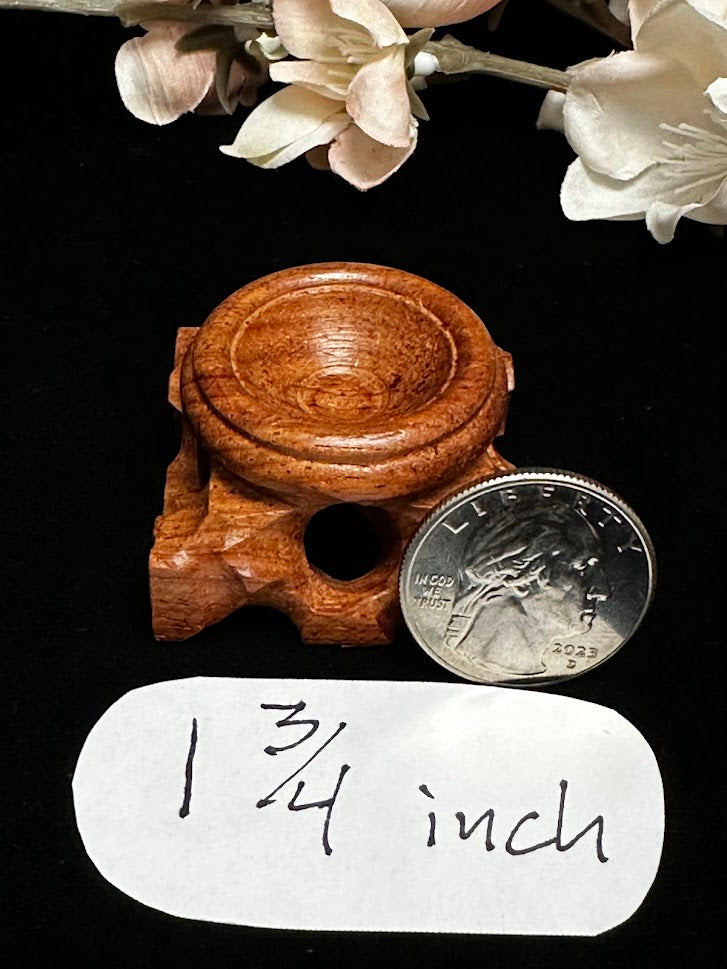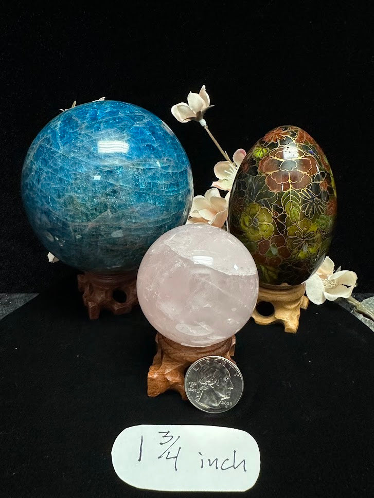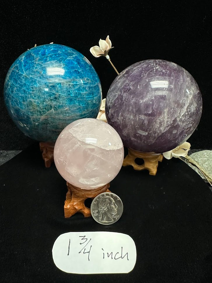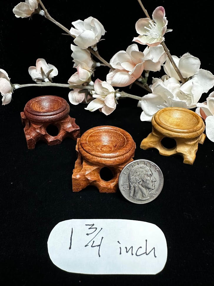 These are stained had carved stands witch offer elegance to enhance your display presentation. Because its natural wood the stain will take different to each piece, so the colors will vary a little pure each piece. These 1.75 inch stands are perfect for medium and larger size spheres and egg shape stones. This stand will handle a sphere size 3.5 inch max 4 inch. Any bigger the sphere WILL ROLL OUT!